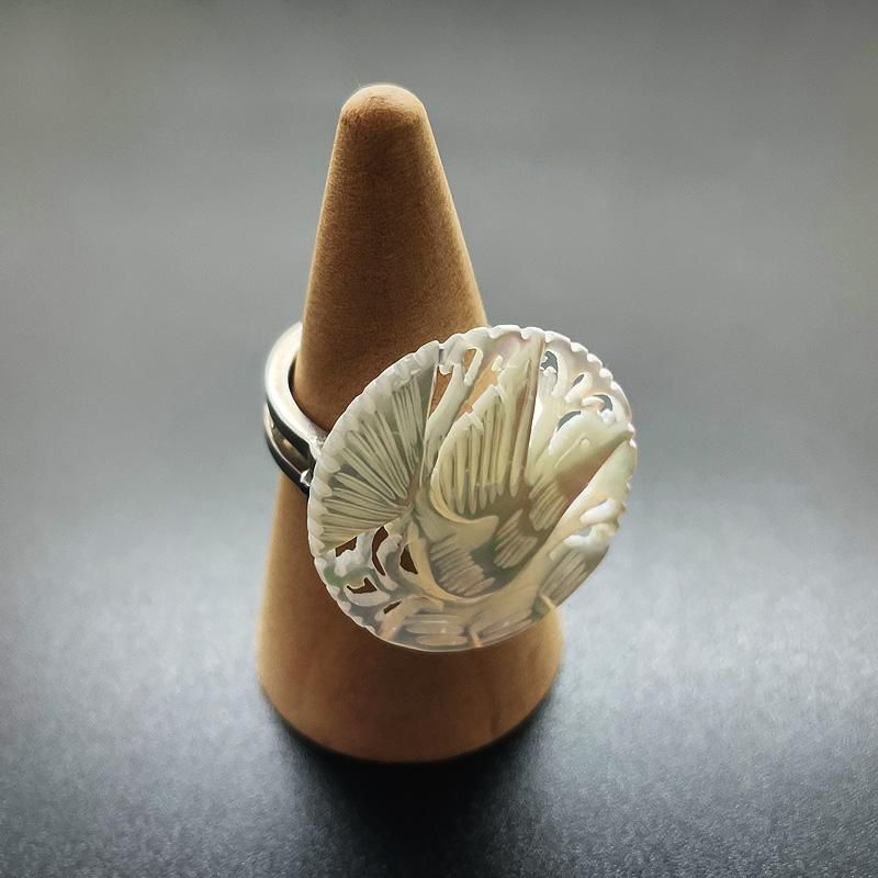 【ご注意事項】天然素材ですので、輝き・色・厚み・反りなど個体差がございます。また、職人によるフリーハンドで作られているため、同じデザインのものでも全く同一ではありませんので、ご購入をお考えの方はこの点をご了承の上、お買い上げ願います。繊細な作品ですので、お取扱いには十分お気をつけてください。