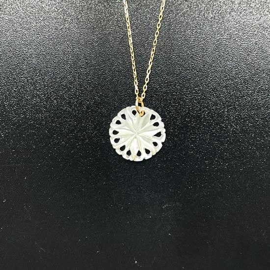一番小さなベツレヘムパールの製作をお願いして出来上がった直径約10ミリのとても小さな七芒星のベツレヘムパールのネックレスです。チェーンは10金製です。チェーンがキラキラと輝いて、美しいネックレスです。いろんな方に、楽しんで頂ける普段使いのアクセサリーです。