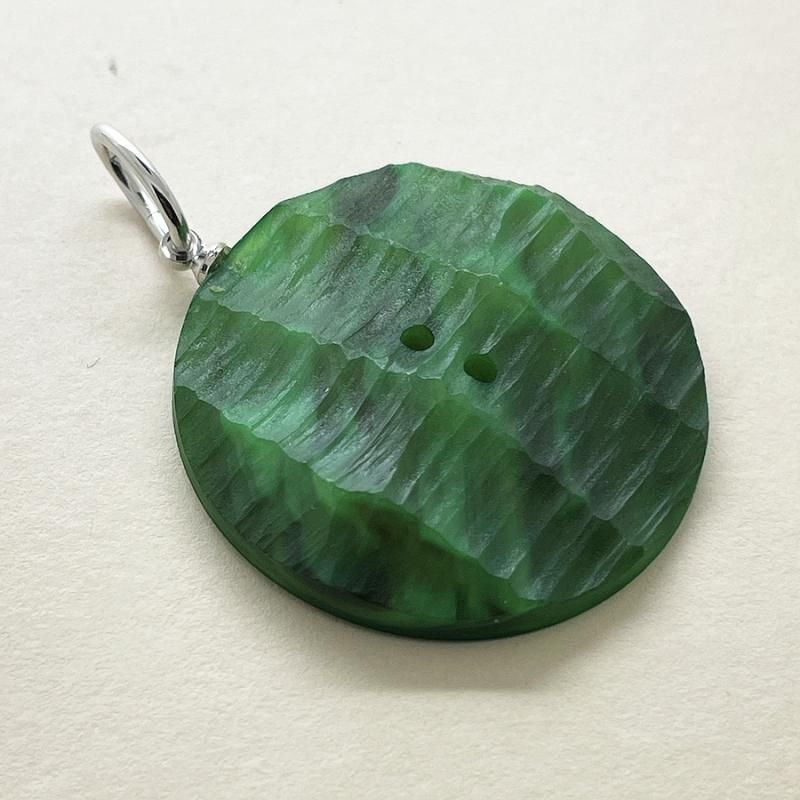 こちらのボタンは表面のハンドカットの彫りが印象的なカゼインボタンです。