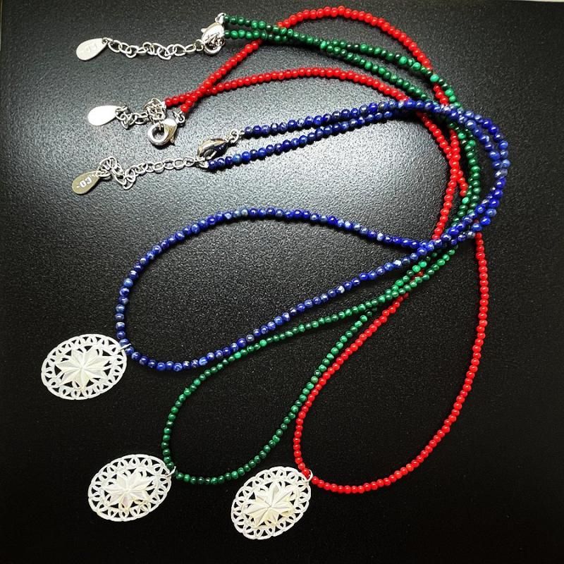 【素材】マザーオブパール、染め珊瑚、クリソコラ、ラピスラズリ(ネックレス)