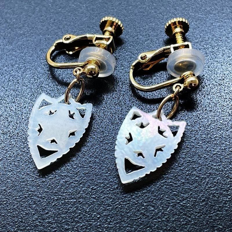 【素材】マザーオブパール(白蝶貝)、イヤリング:真鍮(ねじバネ式)、ピアス:14金ゴールドフィルド(ピアスフック) *その他金具(マルカン)に真鍮を使用しています