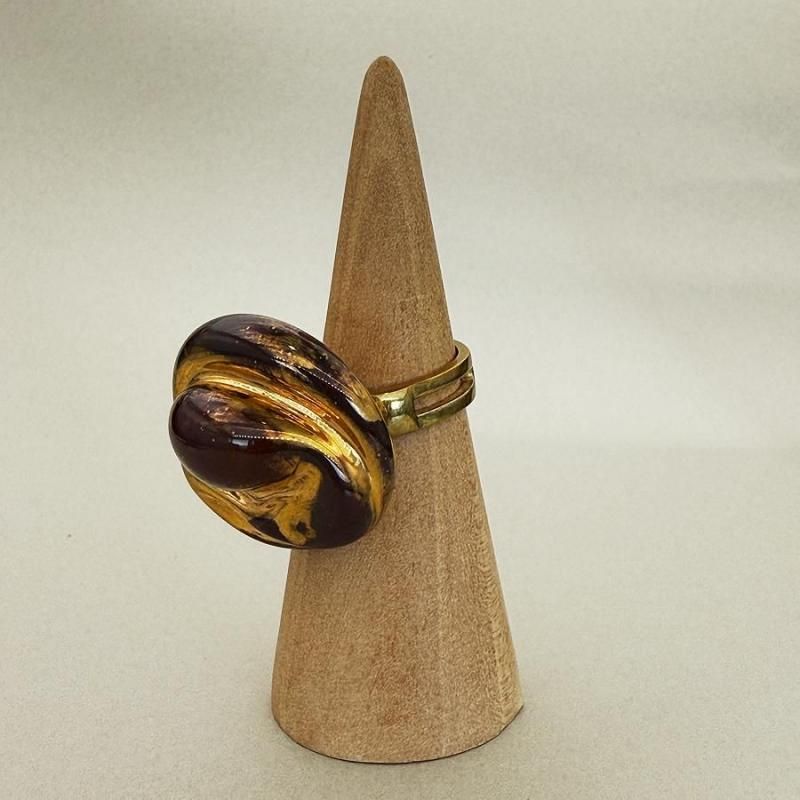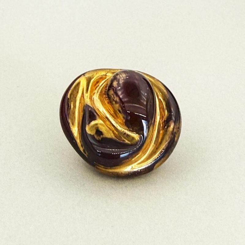 ビミニ社は、ウィーンからロンドンへ亡命した、フリッツ・ランプルが設立したガラススタジオです。フリッツの友人 女流陶芸家のルーシー・リーが、器を作ることが難しかった戦中に、ビミニ社で、ガラスボタン作りの手伝いをしていたことでも有名です。のちに、ルーシー・リーは、ビミニ社からの発注で陶器のボタンも作るようになります。陶ボタンと同じデザインのビミニ社のガラスボタンもあり、ルーシー・リーファンにとっても、とても興味深いボタンです。ロンドンのVictoria&Albert Museumには、ルーシー・リーがデザイン・製作したビミニボタンも収蔵されています。
