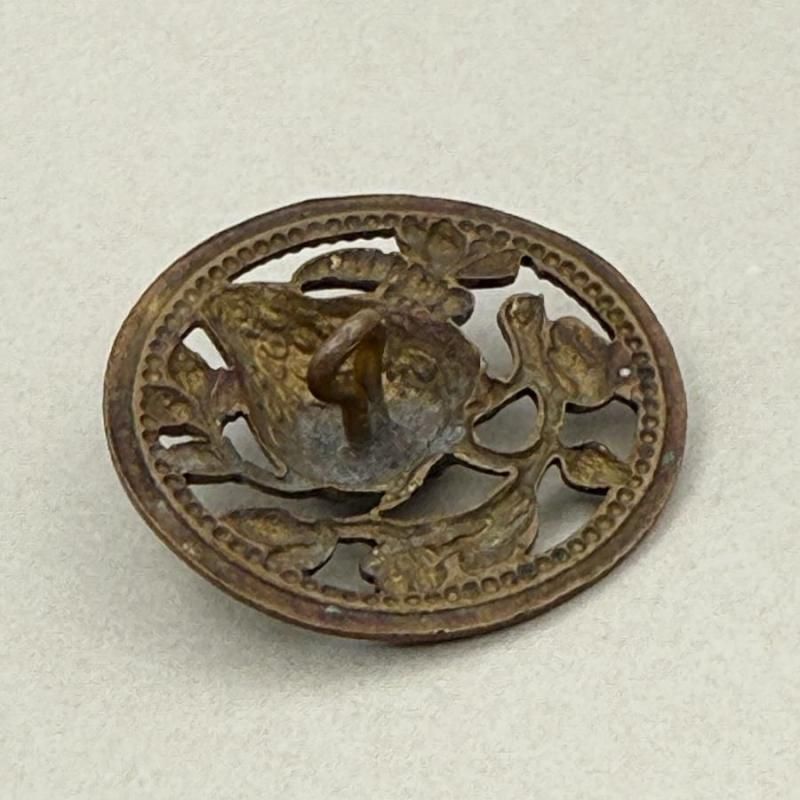 19世紀後半から20世紀初頭のボタンは、留めるためではなく、「魅せる」ための様々なボタンが製作されていました。その中でもメタルボタンはプレス加工の技術の発達により、物語の挿絵のような絵柄のもの、流行のデザインを追ったもの、複雑な模様のものなど、多種多様のデザインのボタンが製作されました。