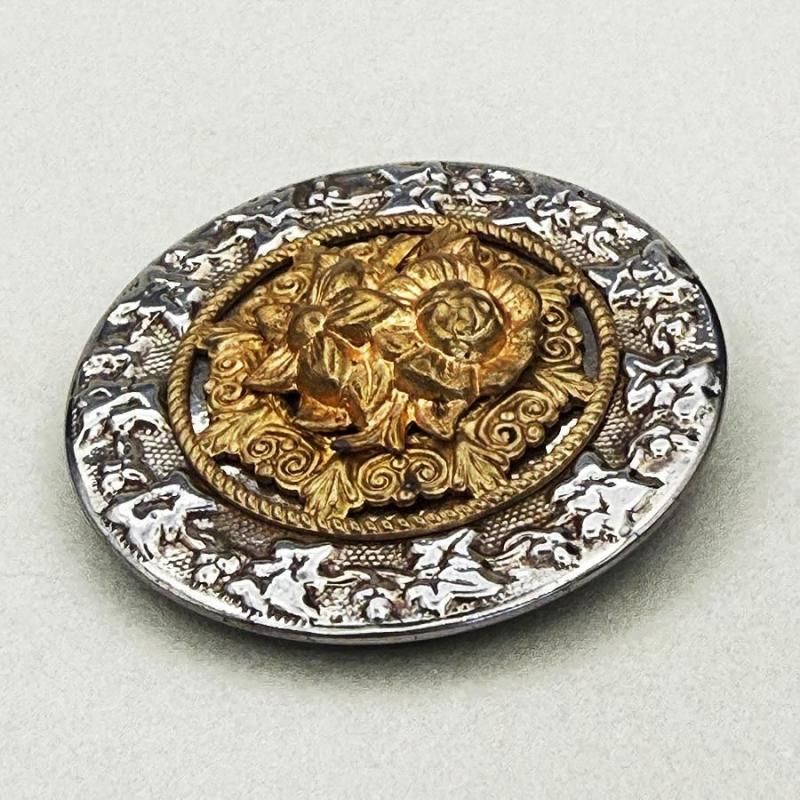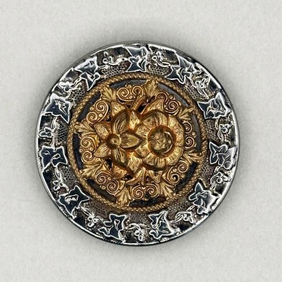 こちらのボタンは装飾が美しい、花の絵柄のメタルボタンです。
