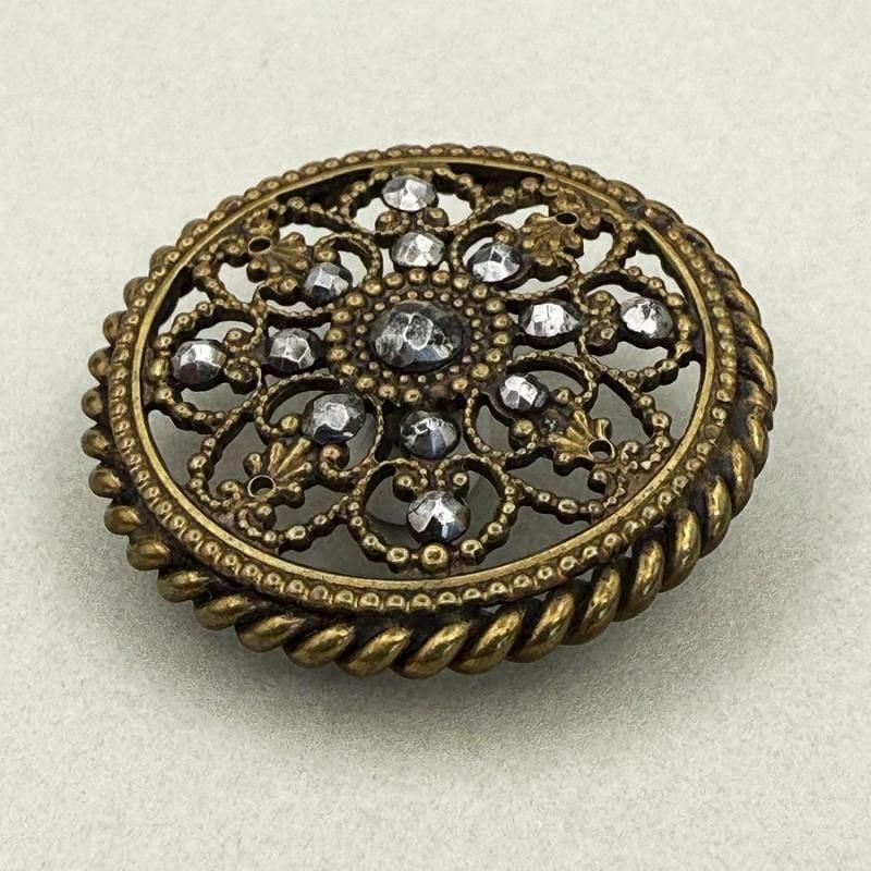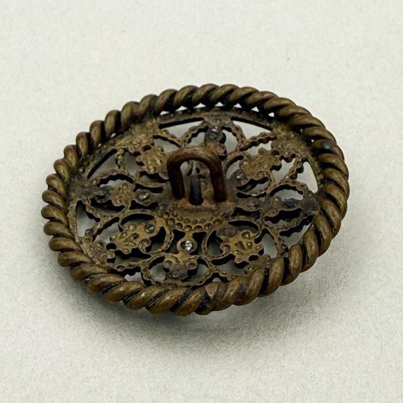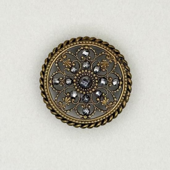 こちらのボタンは細かな透かし模様とカットスチールの装飾が美しいメタルボタンです。