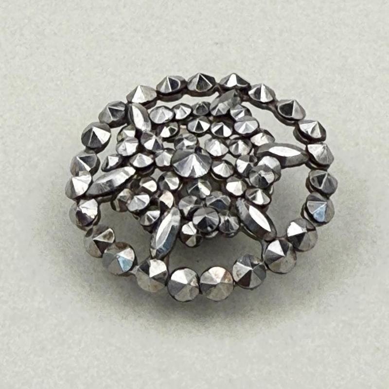 こちらのボタンはキラキラと輝きが美しい、カットスチールが全面に施されたメタルボタンです。