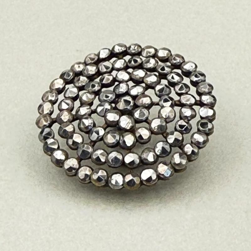 こちらのボタンはキラキラと輝きが美しい、カットスチールが全面に施されたメタルボタンです。