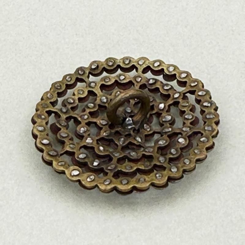 19世紀後半から20世紀初頭のボタンは、留めるためではなく、「魅せる」ための様々なボタンが製作されていました。その中でもメタルボタンはプレス加工の技術の発達により、物語の挿絵のような絵柄のもの、流行のデザインを追ったもの、複雑な模様のものなど、多種多様のデザインのボタンが製作されました。