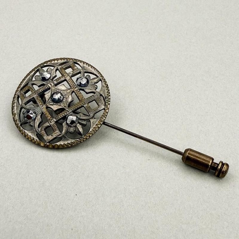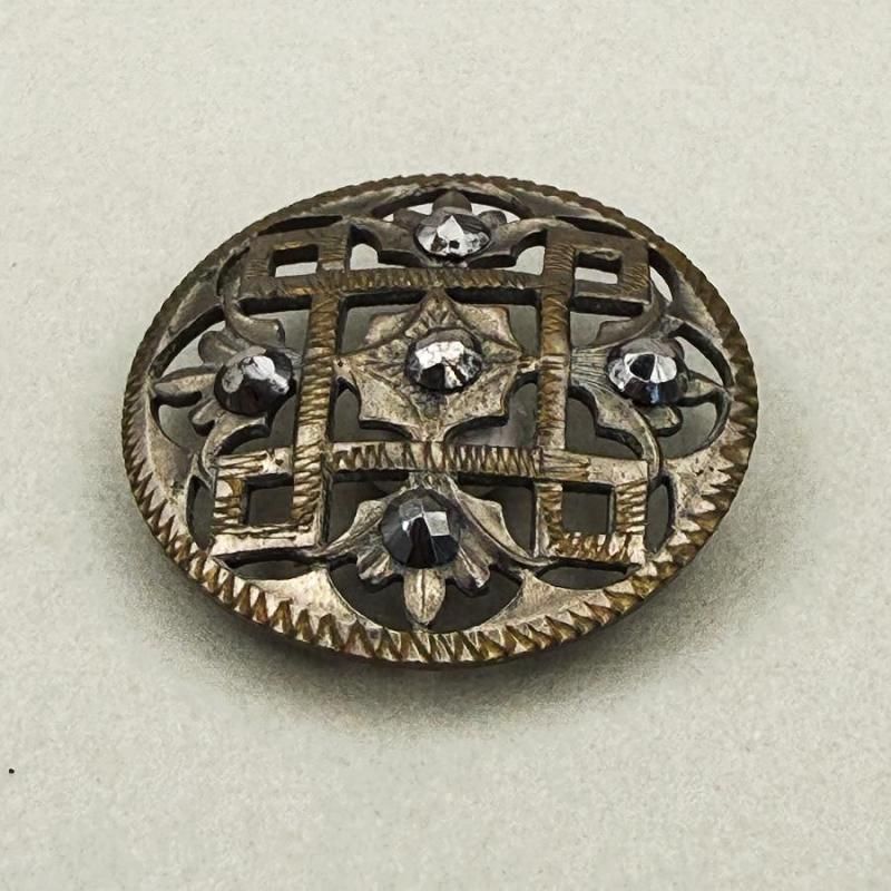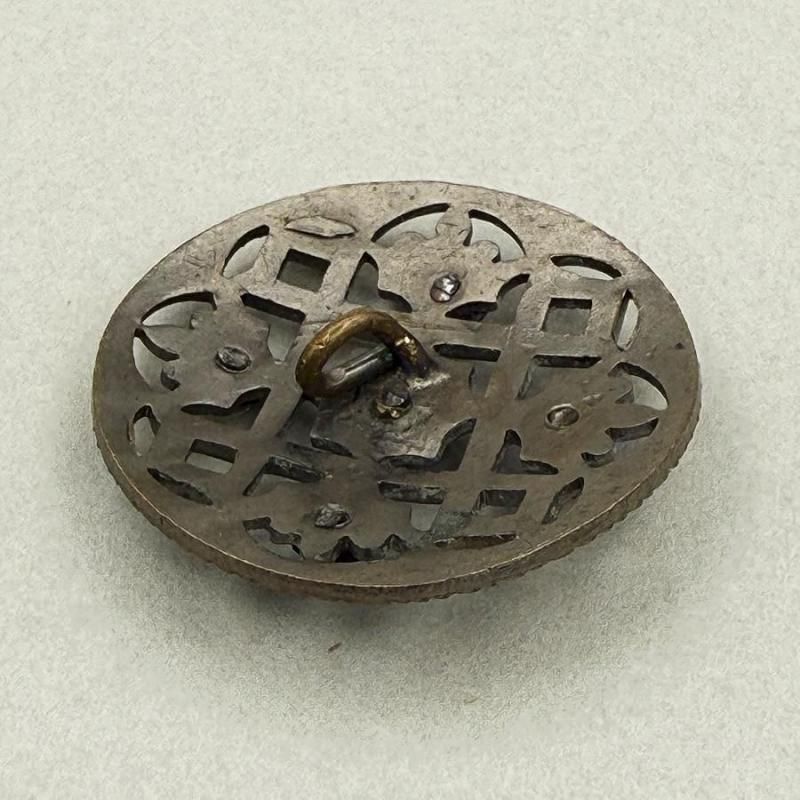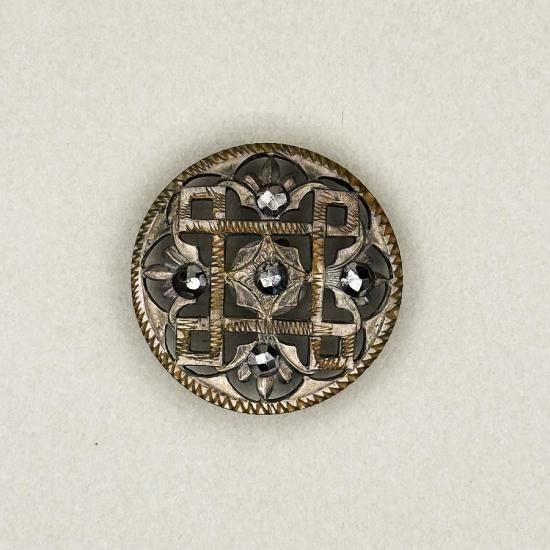 こちらのボタンは透かし模様の上にカットスチールが施された品のあるメタルボタンです。