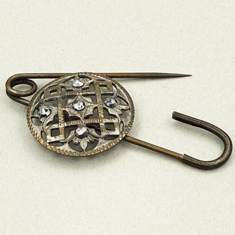 こちらのボタンはリング、キルトピンやボタンピンに取り付けが可能です。