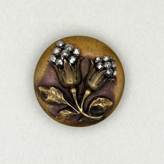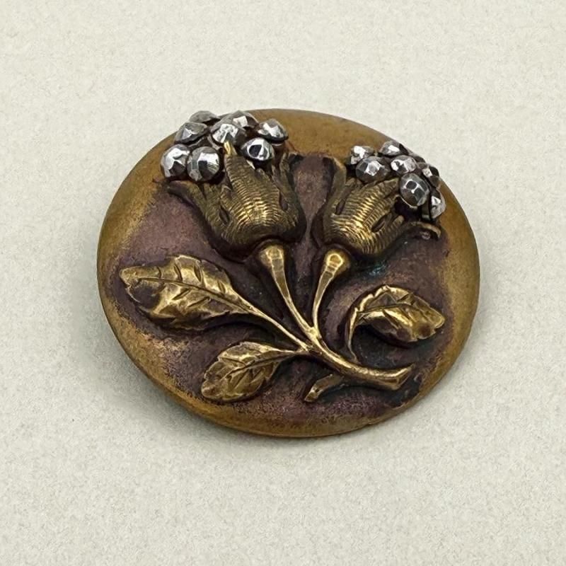 こちらのボタンは花びらの上にカットスチールが施された存在感のあるメタルボタンです。