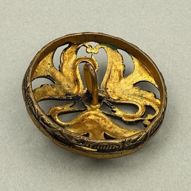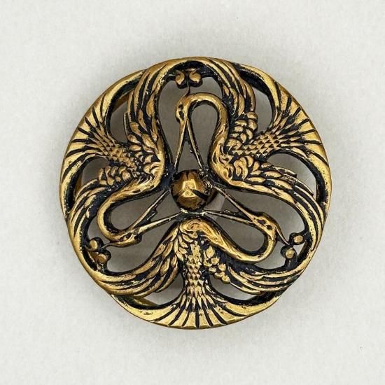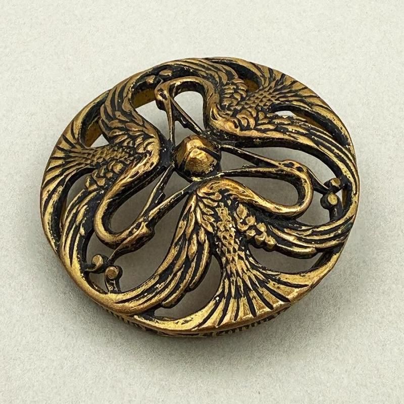 こちらのボタンは3羽の鳥が均等に配置され柄のようにデザインされた、非常に美しく、インパクトのあるアンティークボタンです。コートやジャケットのワンポイントに。
