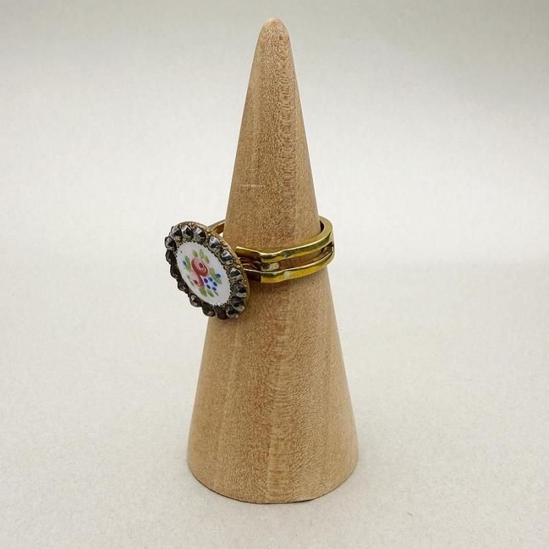 こちらのボタンはリング、キルトピンやボタンピンに取り付けが可能です。