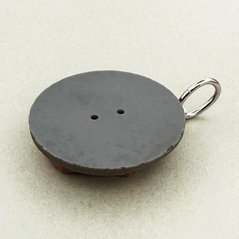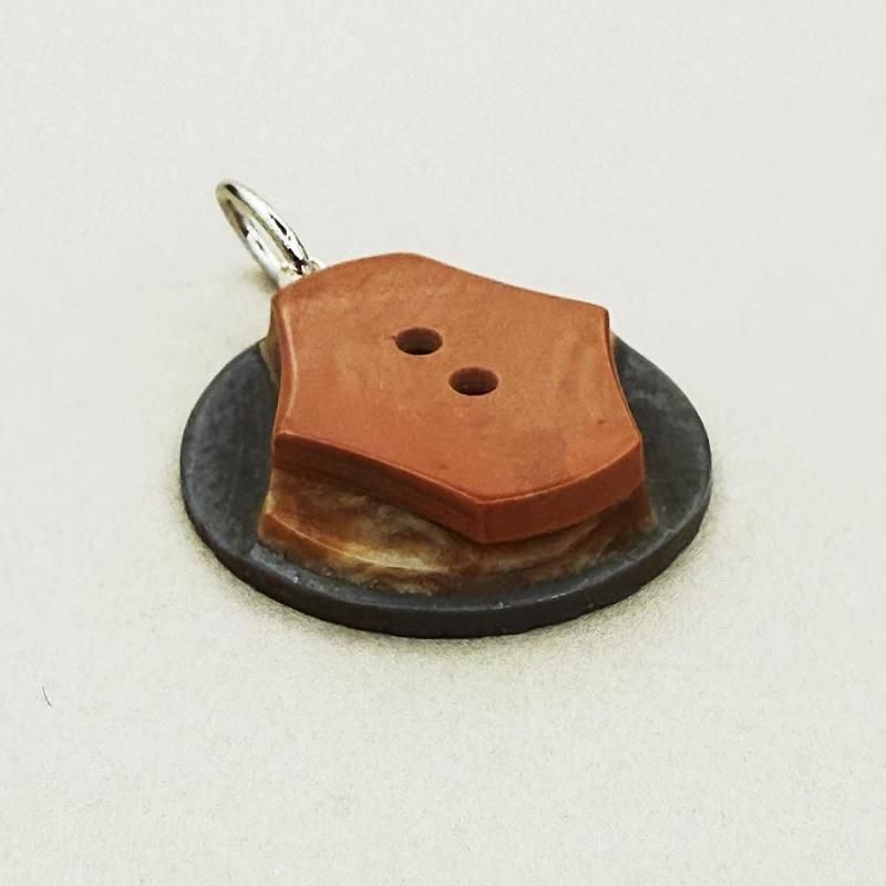 ヨーロッパのヴィンテージボタンでチャームを作りました。ボタンの側面に、ちいさな金具をつけて、ボタンのデザインはそのままに。ボタンは、向きを少し変えるだけで表情が変わるので、金具のつけ位置にもこだわりました。