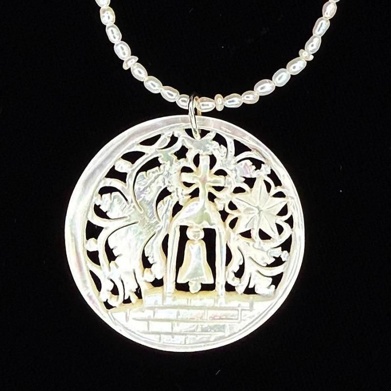 こちらのベツレヘムパールは「ブローチ」、「ペンダントトップ」の2種類ございます。ペンダントトップには、白蝶貝や淡水パール等のネックレスもご用意しています。(ネックレスは別売りです)