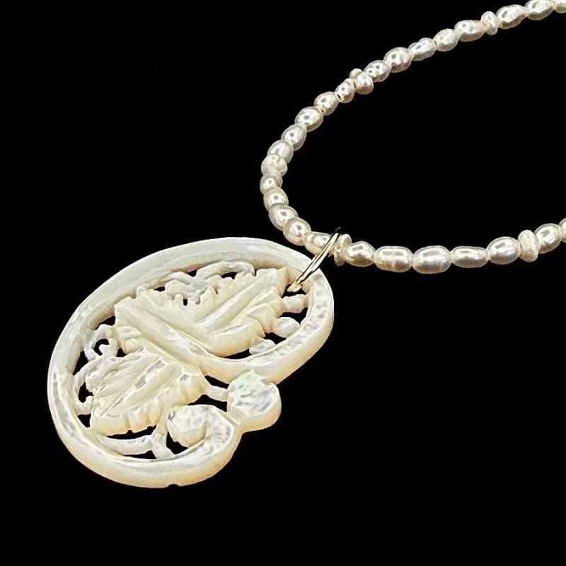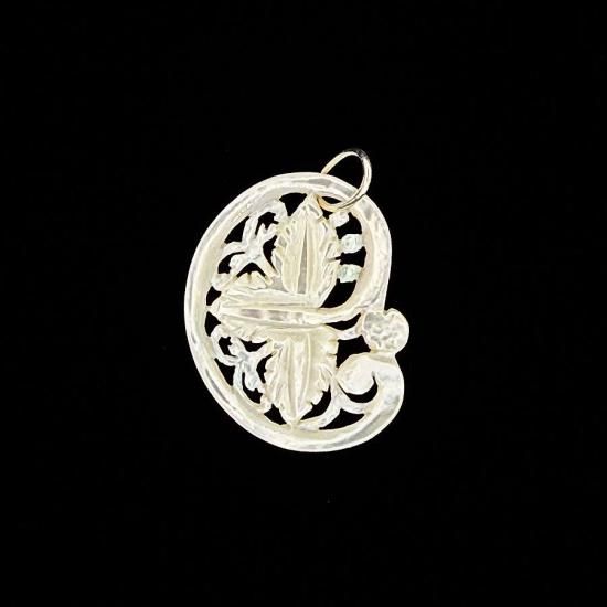 ぶどうの葉を蔦で丸くアシンメトリーにデザインしたベツレヘムパールのペンダントトップです。
