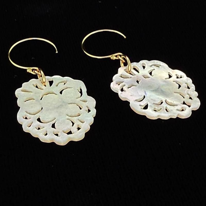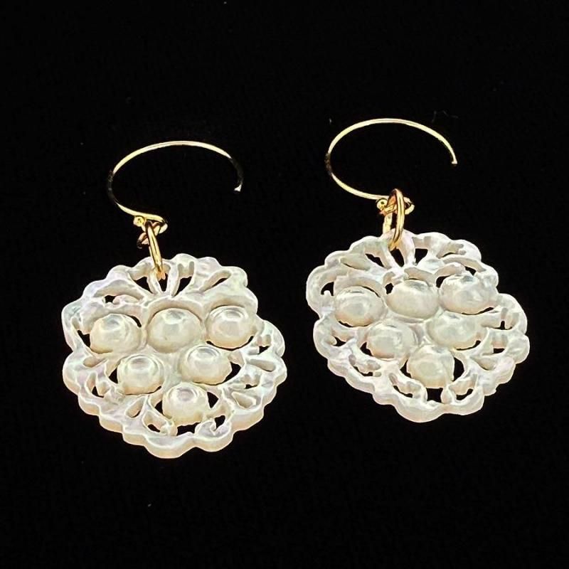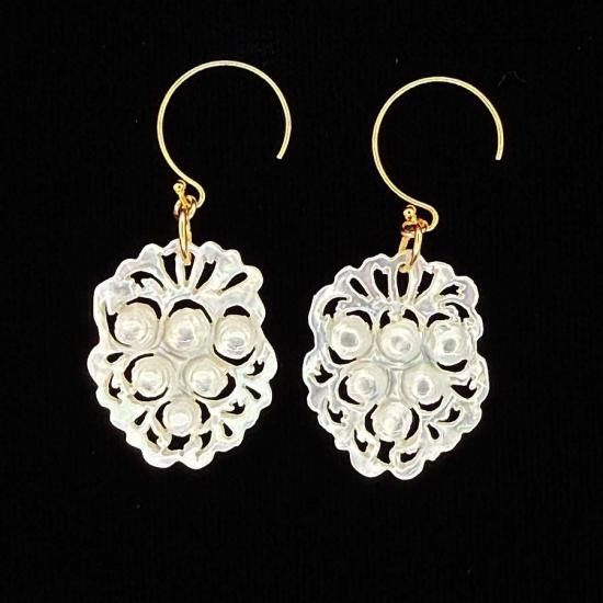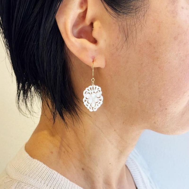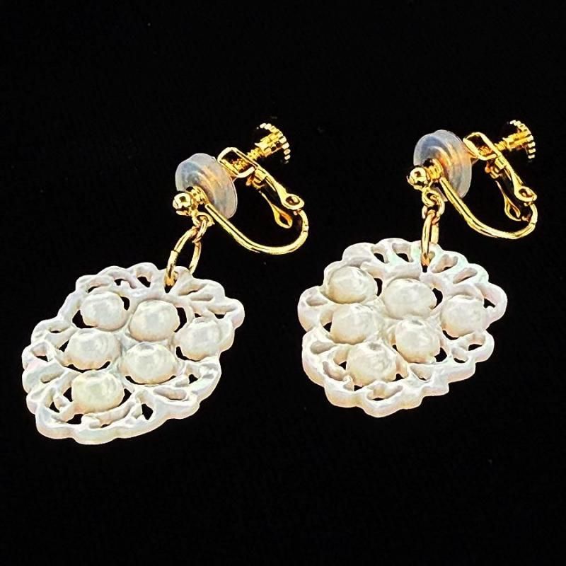 【素材】マザーオブパール(白蝶貝)、イヤリング:真鍮(ねじバネ式)、ピアス:14kgf (丸カンも)