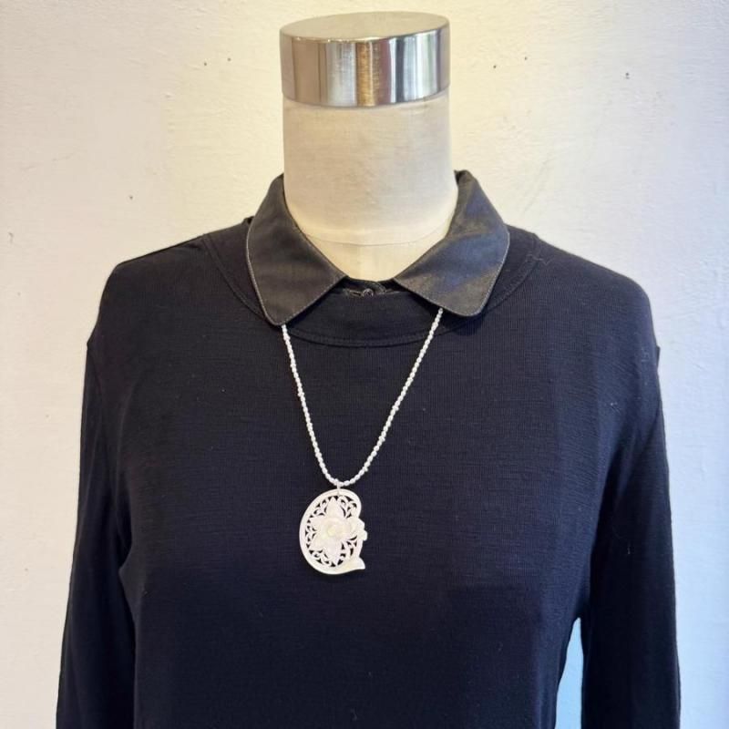 蔦の縁のラインが印象的な花のベツレヘムパールのブローチです。シルバーのカンはロウ付けされています。ネックレスは別売りですので、ご注意ください。